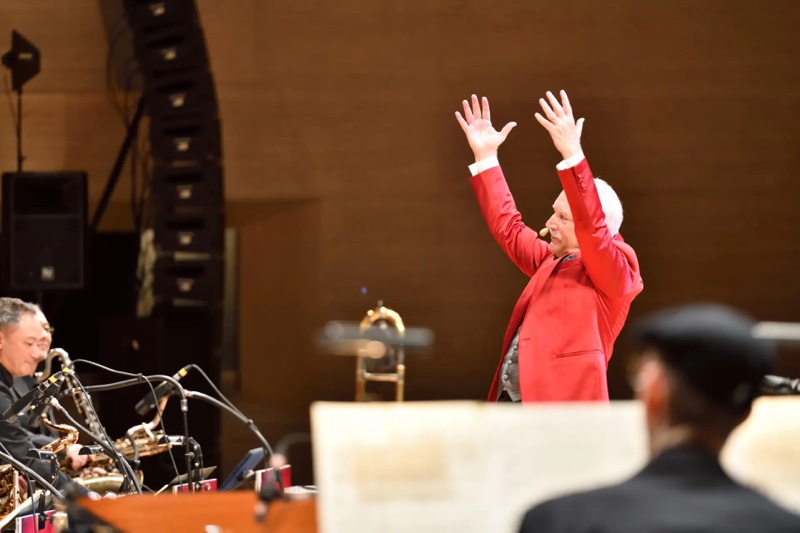 17名のバンドメンバーがステージに入場すると、ドラムの加納樹麻がリズムを刻みはじめ、そのリズムは会場に広がります。そして、3年ぶりの来日となるバンドリーダー&音楽監督のブラッド・ケリーが登場すると、演奏がスタート!オープニングを飾るのは、誰もが一度は聞いたことがある『ピーター・パン』より「右から二番目の星」と、『ラマになった王様』より「ラン・ラマ・ラン」。