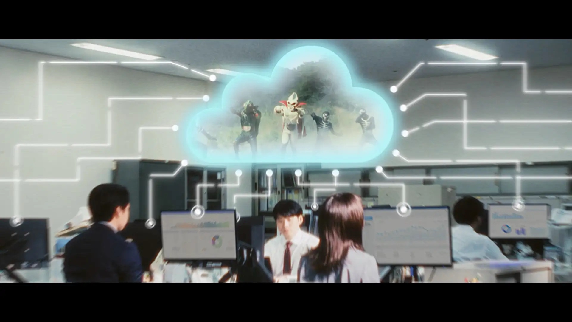 クラウド「栄光の7人ライダー」篇では、企業のクラウドサービス利用に伴う課題を怪人軍団からの攻撃に見立て、7人のライダーが怪人を打ち破り、企業を不安や脅威から救うストーリーとなっています。ライダーたちが連続して繰り出す豪華絢爛な必殺技にご注目ください。